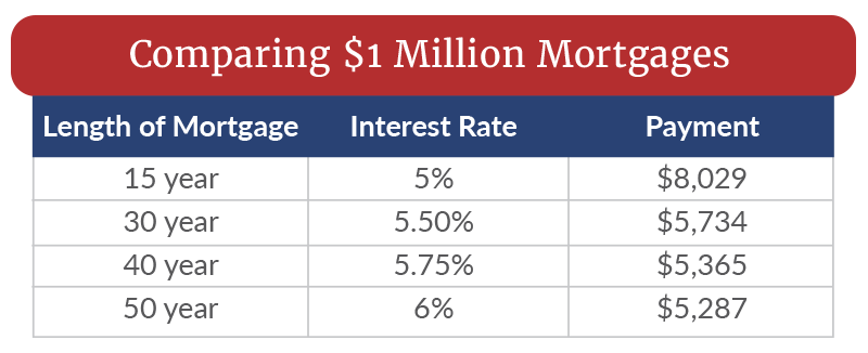 Take a look at this Mortgage Amortization Calculator as well as Mortgage Term Comparison Chart to see what 30 vs. 40 year mortgages look like over their lifespan.
